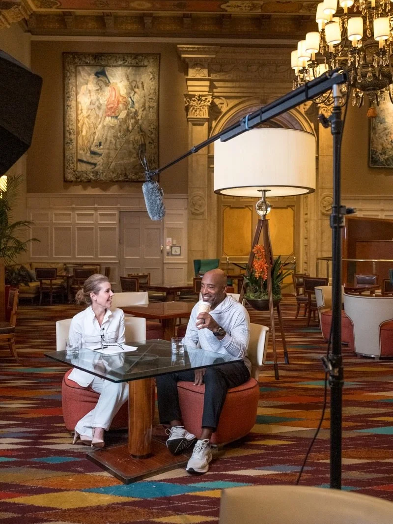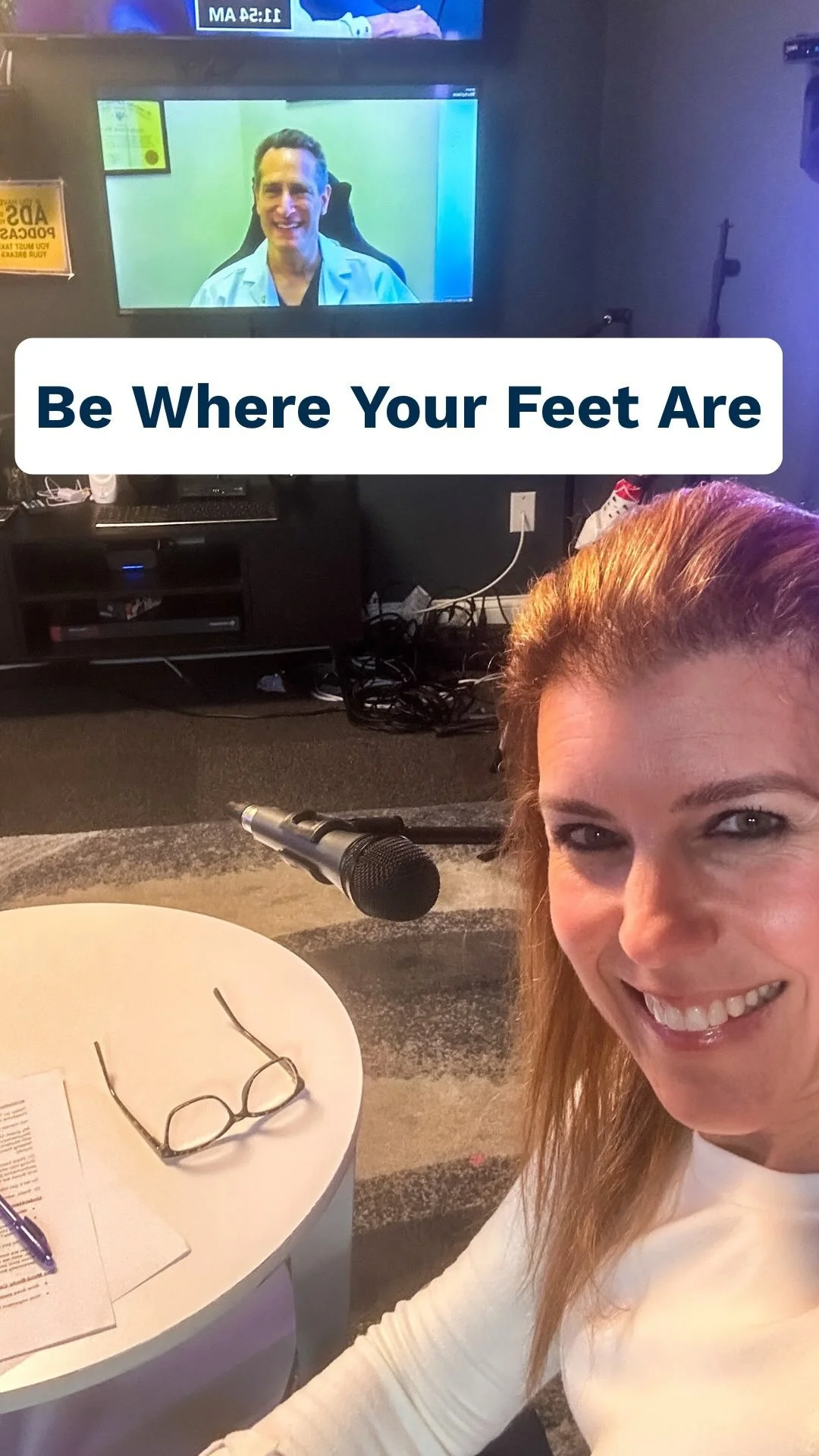 Me? Well, Sherman caught PK in action at the podcast studio recording The Paige Kornblue Show. Naturally, I then slid a microphone her way because while she created my story on canvas, I wanted to share hers on-air.